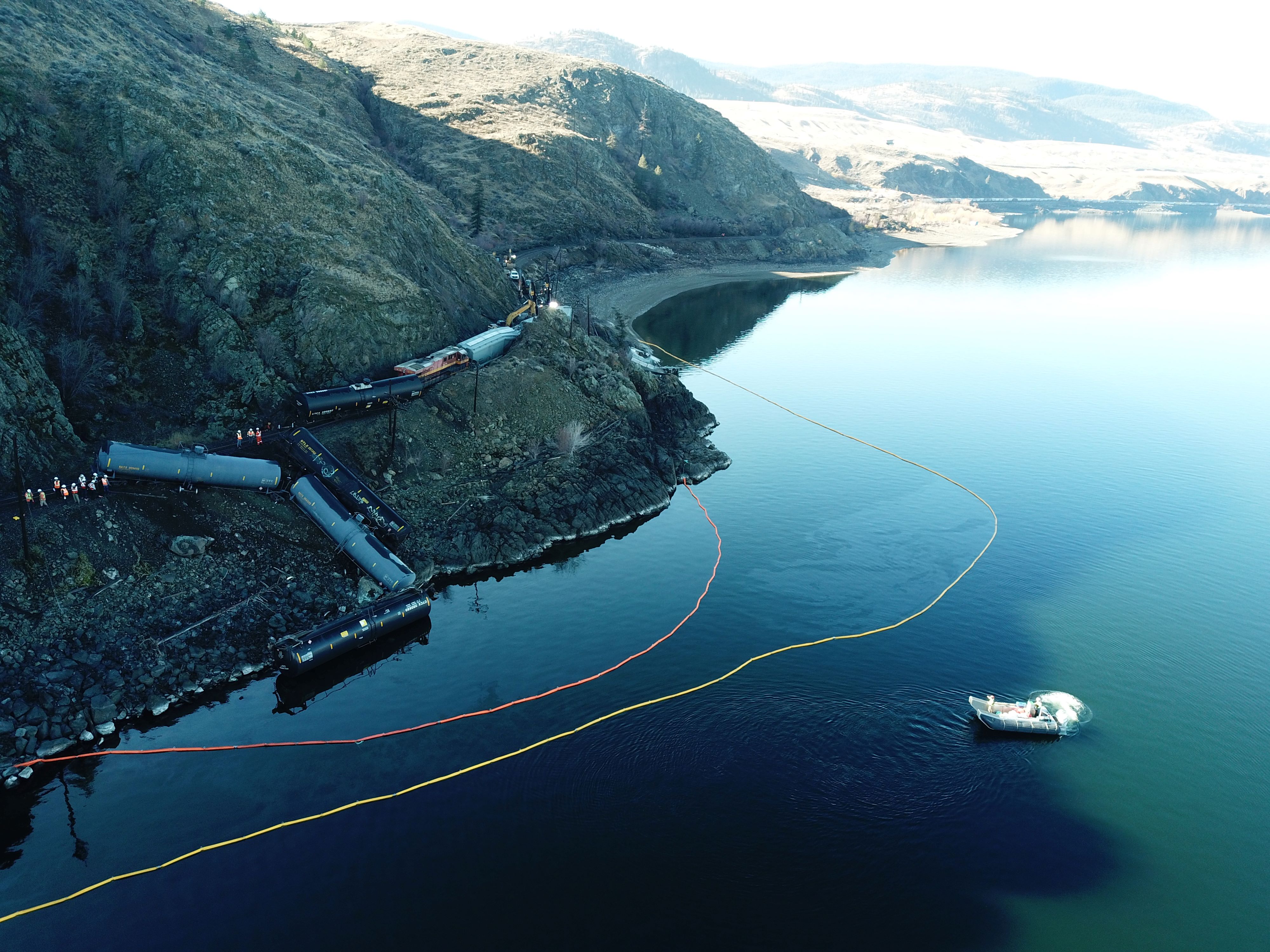 One rail car loaded with aviation fuel has been removed by CPKC. Two rail cars containing aviation fuel remain on the slope. Leaks from the two aviation fuel tank cars on the slope have been reduced to minor drips and have containment in place.