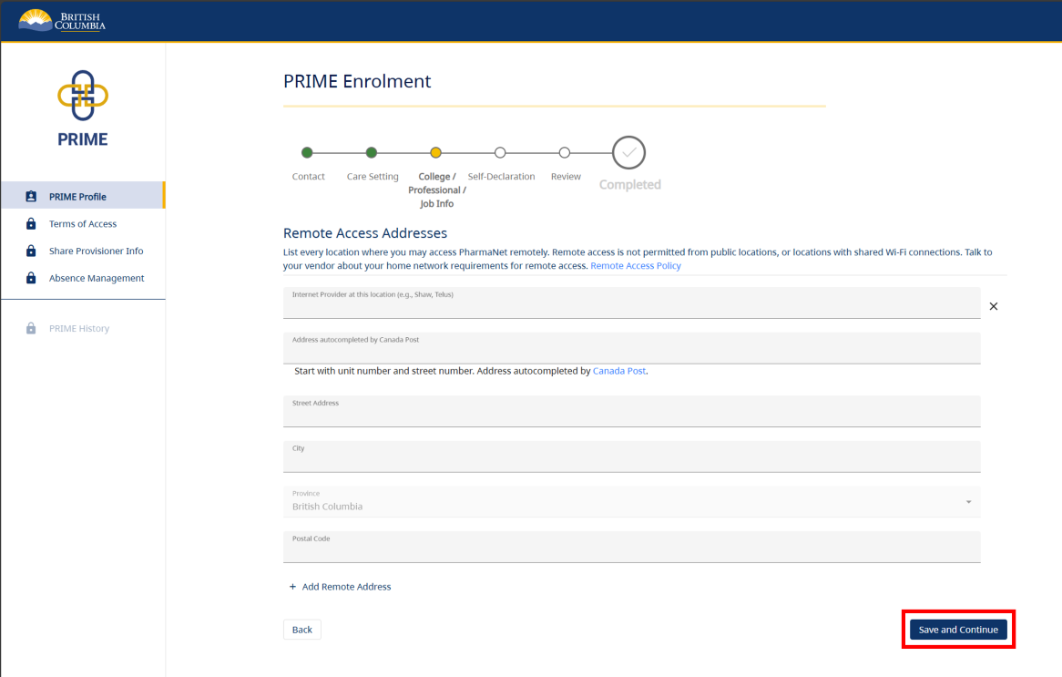 Your enrolment in PRIME is complete. Note your next renewal date. You must renew annually to retain your PharmaNet access.