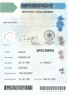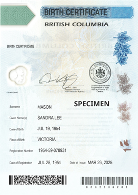 On January 2, 2008, the Vital Statistics Agency moved from paper certificates to more durable polymer certificates. Here are some of the features that make B.C. birth certificates more secure: